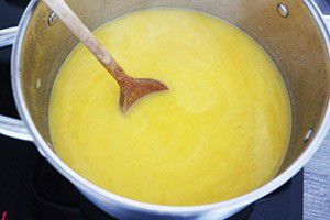 Pureer de soep glad met een staafmixer.